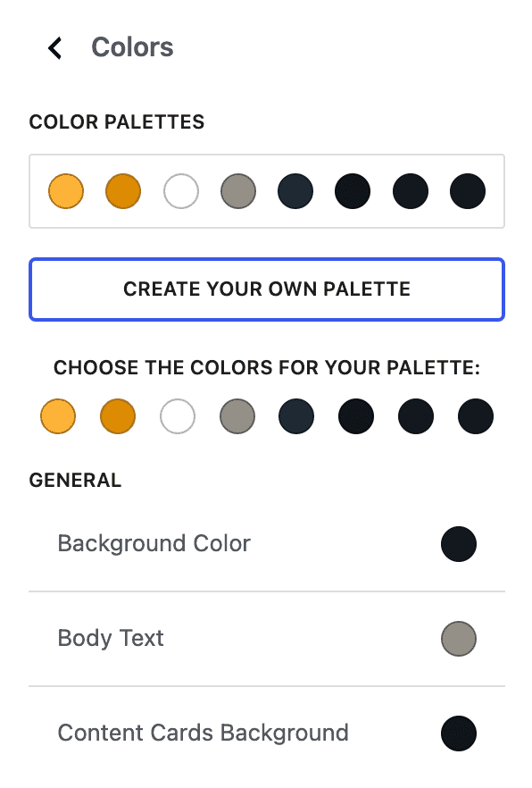 Theme color customization options, and dark mode option #