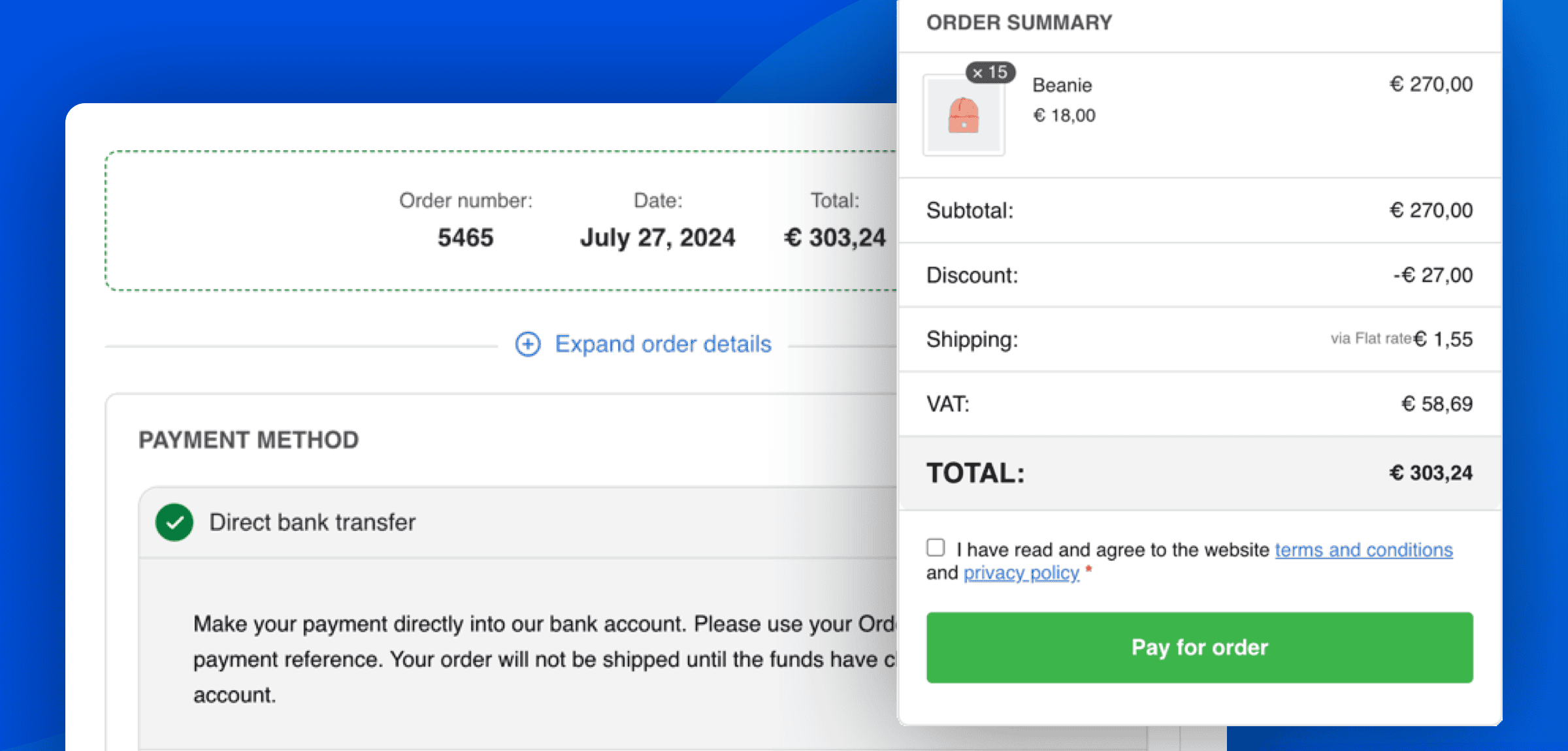 The optimized WooCommerce order pay page offers: