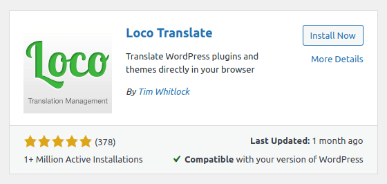 Go to WP Admin > Plugins > Add new, and search for “Loco Translate”. Or download the plugin file from the link below and upload it to your website: