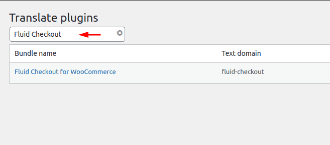 3. Type the name of the plugin or theme you want to translate inside the search field, in this case, “Fluid Checkout”: