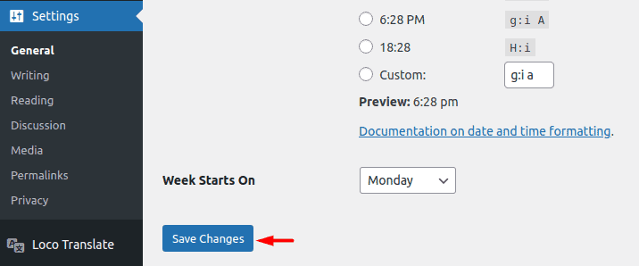 1. Change the default language of your website at WP Admin > Settings > General, then change the “Site Language” to your language.